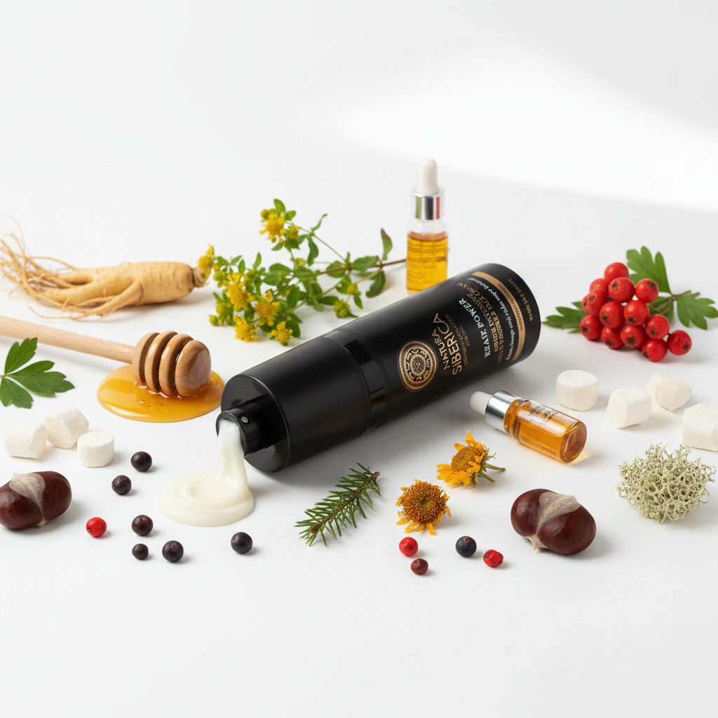 Esta crema antiarrugas súper intensiva «El Poder del Oso» está formulada para satisfacer las necesidades específicas de la piel masculina. El ginseng orgánico y la hierba de San Juan Silvestre, junto con el ácido hialurónico y el Pantenol, tienen un profundo efecto de rejuvenecimiento de la piel, reducen visiblemente las arrugas y ayudan a mejorar el tono de piel.