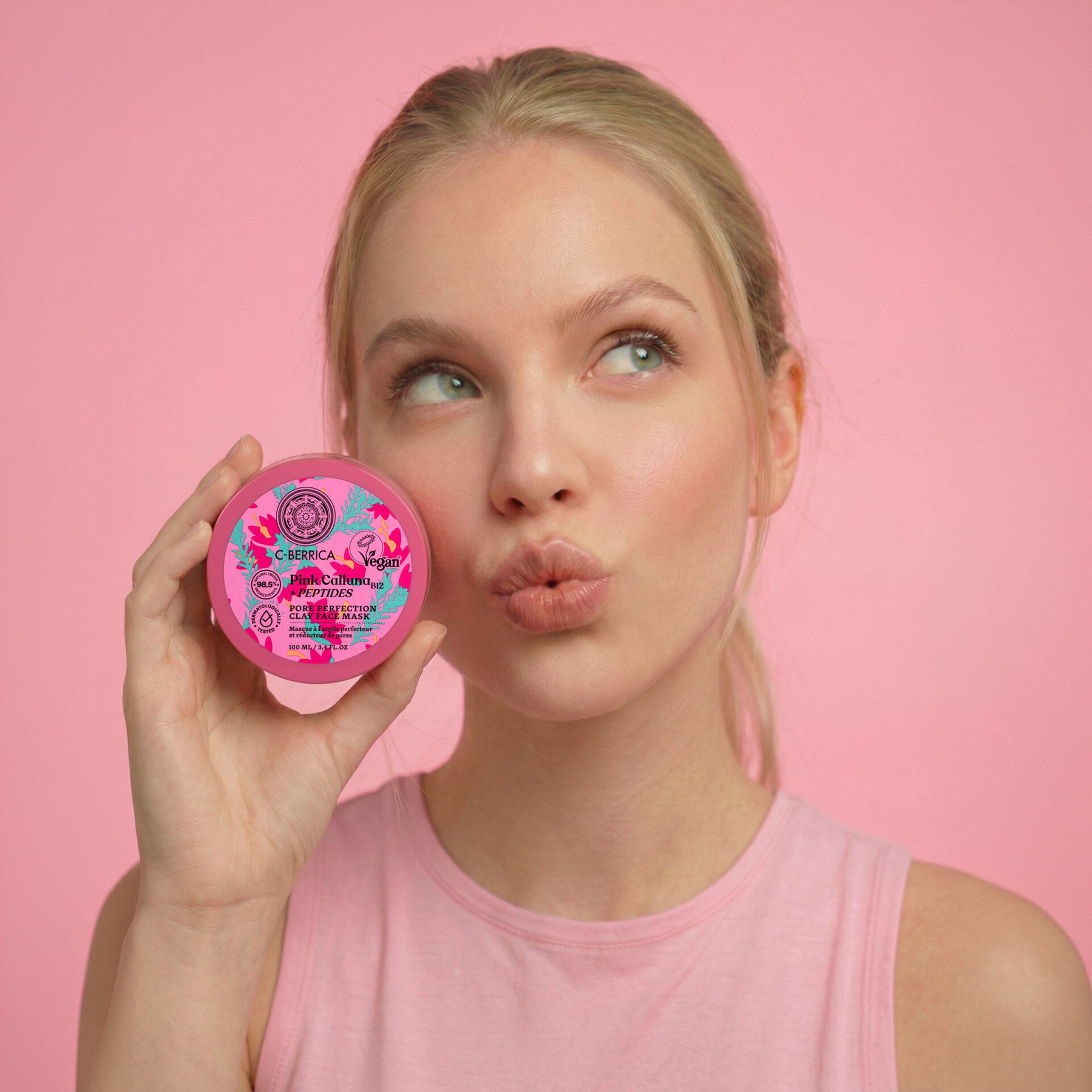 Mascarilla de arcilla rosa que reduce brillos y poros sin resecar. Aporta un efecto détox calmante que deja la piel fresca, uniforme y visiblemente más lisa.
